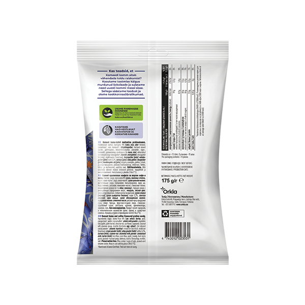 Kalev Komeet kama-kohvi maitseline pralineekomm – ainulaadne kooslus, kus kohtuvad kama ja kohvi eriline maitse ning Kalevi šokolaadi tuttav pehmus. Täidlane ja kergelt nostalgiline maius.